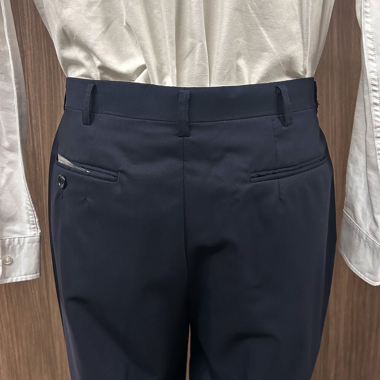 高品質なポリエステル混紡素材を使用しており、優れた耐久性としわになりにくい特性を兼ね備えています。※CERRUTIの生地を使用。
