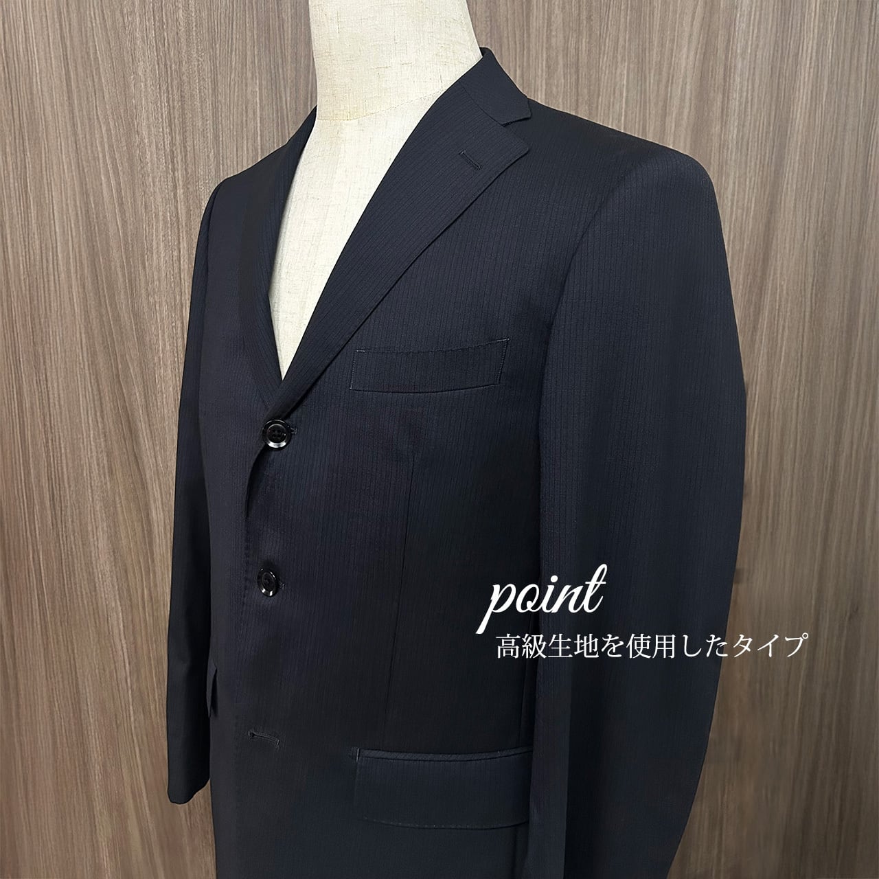 上質なネイビーで、落ち着きのある色合いが魅力。どのシーンでもスーツにふさわしい洗練された印象を与えます。