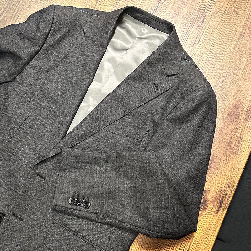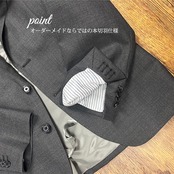 本切羽やサイドベンツ、総裏地に内ポケットなど細部にオーダーメイドならではの仕様を散りばめた商品です。
